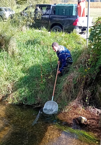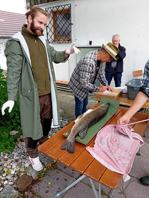 Gewässerwart Kugler zeigte, wo die Fische stehen.