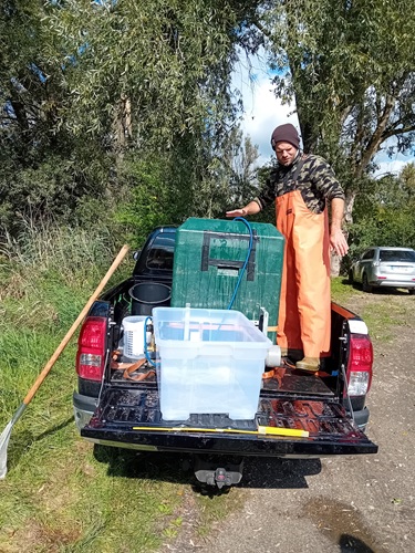 Zum Abschluss konnte auch eine Reuse aus dem Wasser geborgen werden.